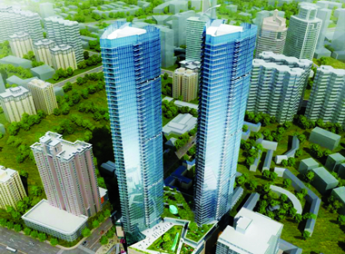 項(xiàng)目是無(wú)錫老城區(qū)崇安寺地區(qū)的地標(biāo)性建筑,總建筑面積17.8萬(wàn)平方米。項(xiàng)目為雙子塔核心筒-鋼框架結(jié)構(gòu),地下3層、地上裙房6層及塔樓A、B兩幢65層含商場(chǎng)、酒店和酒店式公寓等組成,高265米。