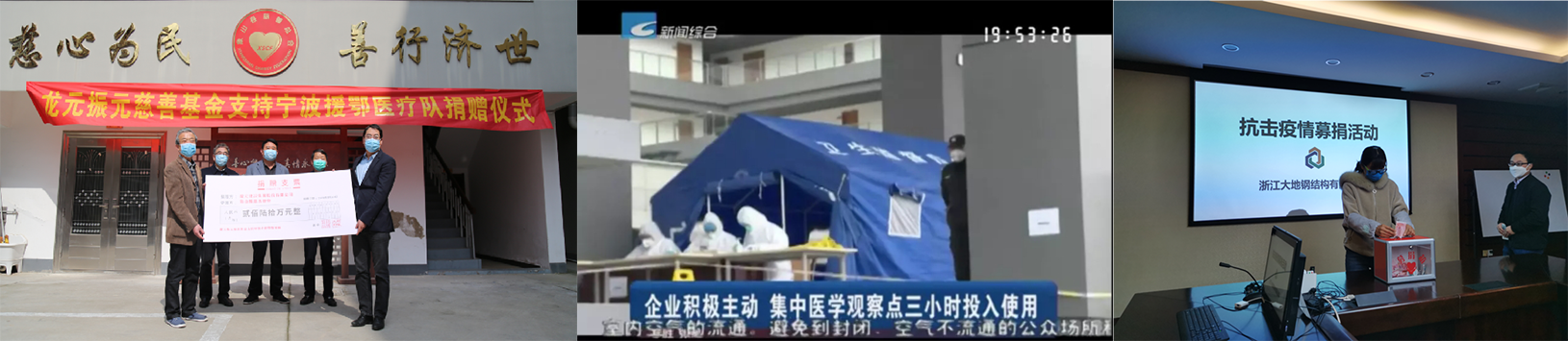 在眾志成城,齊心抗疫的過程中,全國各地的龍元力量也在默默行動著:天津公司孫紅日項目部捐贈山西太原萬柏林區華興街道10萬元;洞頭PPP項目部為洞頭區政府和城發公司捐贈了2500個一次性醫用口罩;集團黨員積極響應號召,每位黨員遞交了2個月特殊的黨費;上房設計院全體黨員為抗疫行動捐款86750元;集團子公司大地鋼構在一天之內收到了176名員工的愛心捐款……