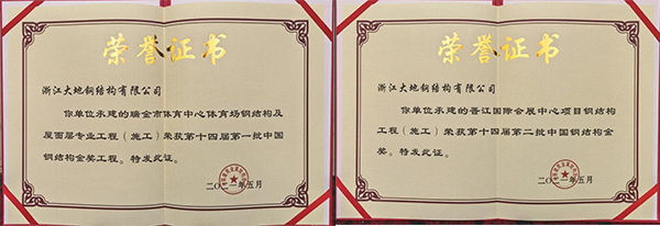大地鋼構作為龍元集團整個建設板塊中的重要一環,在2021年全國建筑鋼結構行業大會上斬獲“2020年度全國建筑鋼結構競爭力50強企業”、“2021年度建筑鋼結構行業科技創新優秀企業”、“2020年度全國建筑鋼結構誠信企業”等多項榮譽稱號。大地鋼構承建的瑞金市體育中心體育場鋼結構及屋面層專業工程榮獲第十四屆第一批“中國鋼結構金獎”,晉江國際會展中心項目鋼結構工程榮獲第十四屆第二批“中國鋼結構金獎”。值得一提的是,這是鋼結構領域工程質量最高榮譽獎。多項鋼結構領域的殊榮肯定了龍元集團的專業水準,為后期承接更多鋼結構項目打下了堅實的基礎。