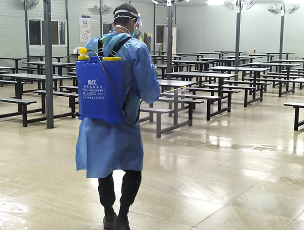 同時,項目部牢牢把控項目各主要進出口,外防輸入,內部嚴控,對辦公區、工地現場、生活區全面消殺。調撥防疫物資、發放防疫用品,聯系街道辦理通行證,保證食物供應,各項工作也在有序開展,項目部開始進入封閉管理階段。