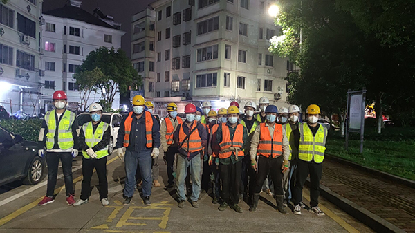 時間緊,任務重,五個小區、一條街道主干道、無數個大大小小的封堵點。援助隊伍與時間賽跑,通宵達旦開工,濃濃的夜色中,是一個個身穿“龍元建設”背心的身影在穿梭忙碌。必須全力以赴盡快完成隔離措施,我們的腳步越快一秒, 居民群眾的生命安全保障就越高。經過九小時四十五分鐘的奮戰,援建任務全面完成。