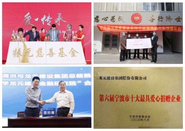 除了用自己的經(jīng)營舉措為家鄉(xiāng)添磚加瓦,龍?jiān)槽x躍參與到寧波地區(qū)的各項(xiàng)公益活動:除了去年向?qū)幉ù髮W(xué)捐資3600萬打造寧波大學(xué)龍?jiān)ㄖ鹑谘芯吭阂酝猓?/span>自2007年起就設(shè)立的“龍?jiān)壬茲?jì)困”慈善基金,14年來已累計(jì)捐贈基金善款700萬元,救助支出606.358萬元,使1100余人次困難群眾得到救助。2020年新冠疫情期間,龍?jiān)?/span>又用實(shí)際行動踐行愛心企業(yè)的家國情懷和責(zé)任擔(dān)當(dāng),捐贈639.2萬元用于援鄂醫(yī)療醫(yī)護(hù)人員,其中260萬元捐贈給寧波、象山援鄂醫(yī)護(hù)人員。